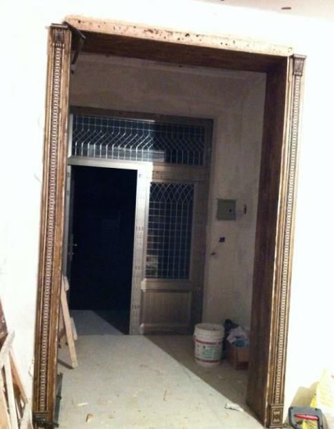 最終,將臉線往門套上裝載。先在槽內(nèi)涂上實(shí)木膠,接著用發(fā)泡膠噴在臉線和門套并且墻的間隙中。