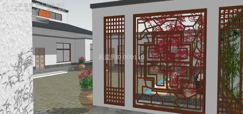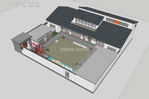 總體建筑利用華夏的傳統(tǒng)四合院布局,除堂屋局部二層之外,其他的仍舊為一層雙坡頂,主通道采取新中式的解決手段,圍墻則是采取紅色墻體加青磚檐口,充足細(xì)節(jié);