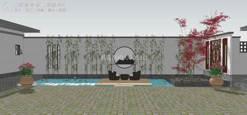 主通道線腳和屋檐細(xì)節(jié)相對(duì)充足,起到引人注重的功效,木色大門和局部鏤空的深灰色網(wǎng)格相得益彰,雙側(cè)設(shè)置竹池,寓意節(jié)節(jié)升;