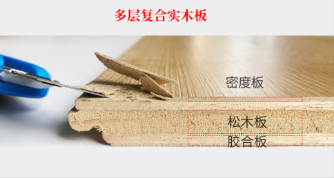 多層復合實木板剖面圖,能夠直觀看出多層板復合而成。