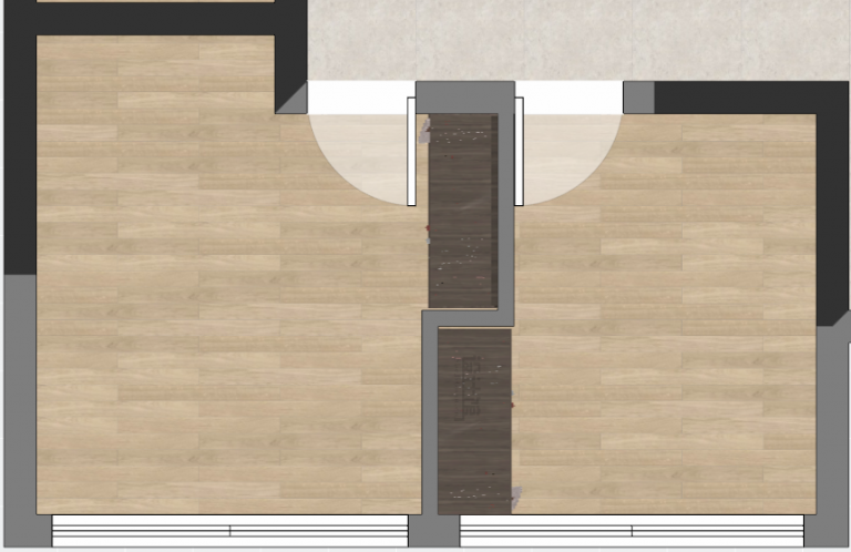 像這樣兩個相鄰的空間做柜子,可以采取入墻式的設計,把墻體做成弓字形的,然后兩側的柜子都入墻,這樣只需要一面墻+一個柜子的厚度,讓兩邊的空間都有收納柜的設計。
