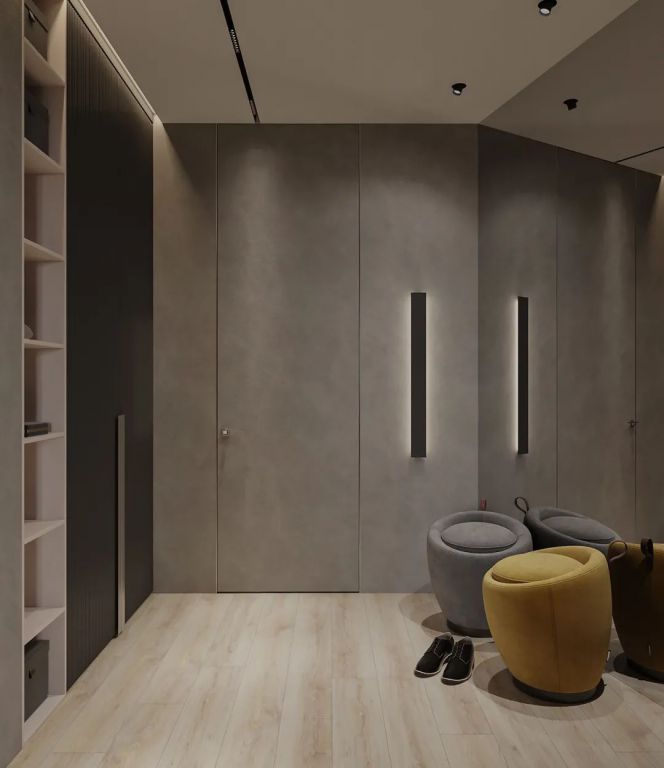 極致簡約的造型,高度的色彩凝練,將木門作為空間設計的入口,讓木門、墻板、家具飾面效果一體化,是家居空間的點睛之筆。