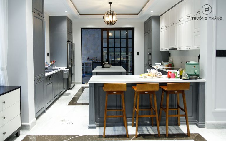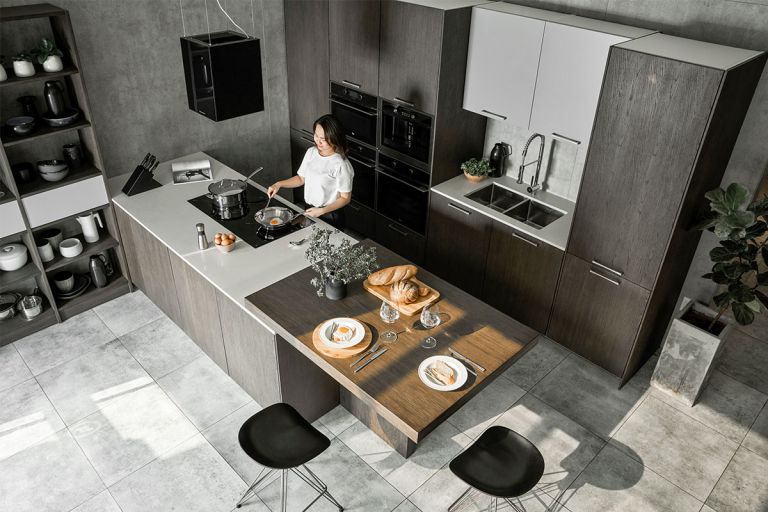 工字形廚房,廚房半島與餐桌和定制照明相結(jié)合,不僅有助于促進(jìn)放松,還可以減少照射在居住者臉上的光線,將注意力吸引到食物上。如果沒有足夠的光線,即使是精心設(shè)計的房間也會顯得沒有吸引力和乏味。
