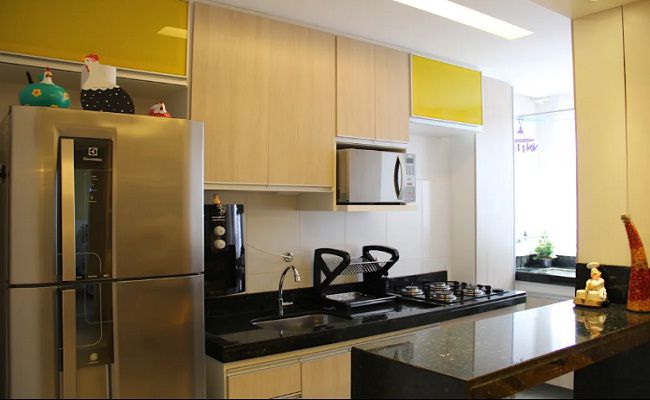 近年來,像這樣的微型櫥柜的廚房設計在需要緊湊且便宜的廚柜的家庭中變得非常流行。這不僅是一個方便的廚柜模型,還為您的廚房空間創造了獨特的新功能。